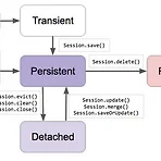 스프링 데이터 JPA(inflearn) - 백기선 핵심 개념 이해 엔티티의 상태와 Cascade 엔티티의 상태 Transient: JPA가 모르는 상태 ex) new 사용하여 객체생성 상태 Persistent: JPA가 관리중인 상태 (1차 캐시, Dirty Checking(변경사항을 계속체크), Write Behind, …) ex) session.save()를 통해 저장한 상태 1차 캐시(persistent context(session, entitiymanager등)에 저장된다.) 바로 쿼리문을 날리지 않고 1차캐싱 후, 트랜잭션 종료 시 객체를 체크하여 쿼리문을 날린다. (불필요한 쿼리문 날리지 않는다.) Detached: JPA가 더이상 관리하지 않는 상태. session이 끝난상태 Removed:..
